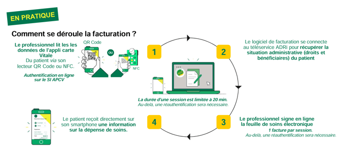 Les données contenues dans l’appli carte Vitale sont fiables car toujours à jour (mises à jour automatique), et l’appel au service de droits en ligne ADRi pour la part obligatoire est systématique ; - 🧼 Bonus sanitaire :