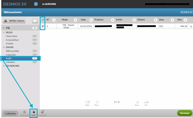 Cochez tous les lots (vous pouvez visualiser les feuilles de soins contenues dans chacun).