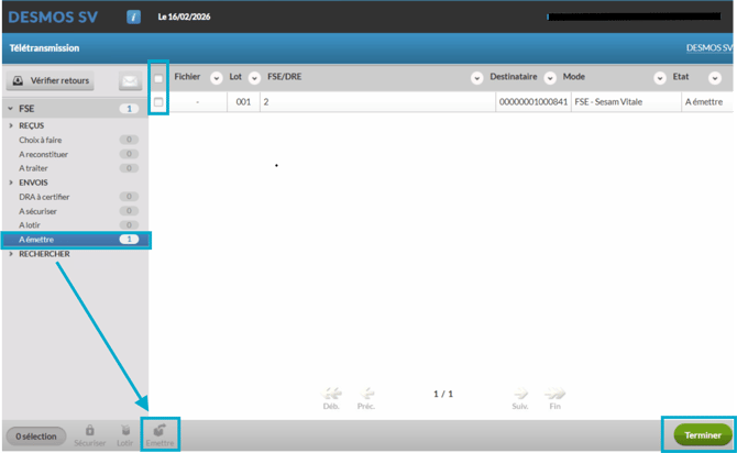 Cliquez en bas sur "Émettre". Les lots sont alors transmis aux caisses.