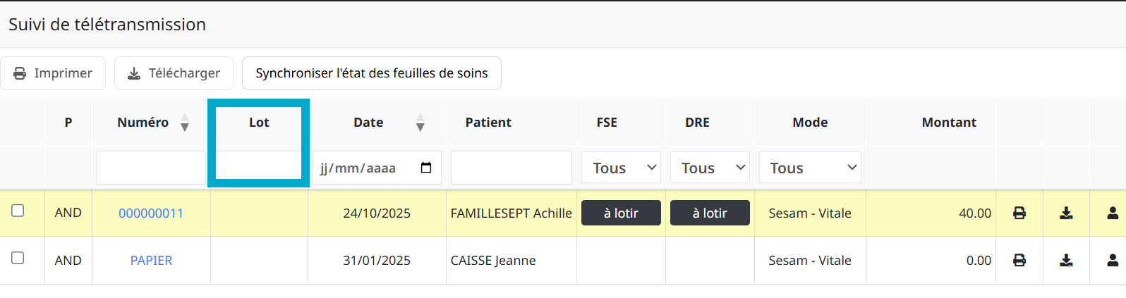 Retrouvez rapidement des feuilles de soins grâce au numéro de lot, même en cas de rejet sans informations patient.