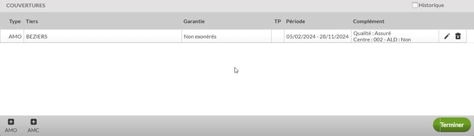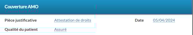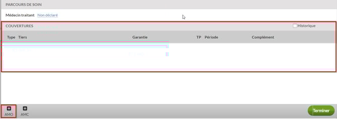 Il n' y a aucune couverture, cliquez sur AMO pour ajouter les informations contenu sur l'attestation.