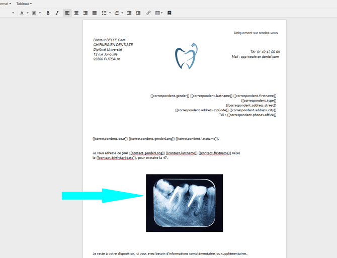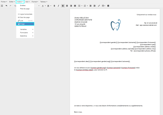 *: La variable Logo est également disponible pour importer automatiquement le logo du groupe : Enregistrer le logo du cabinet