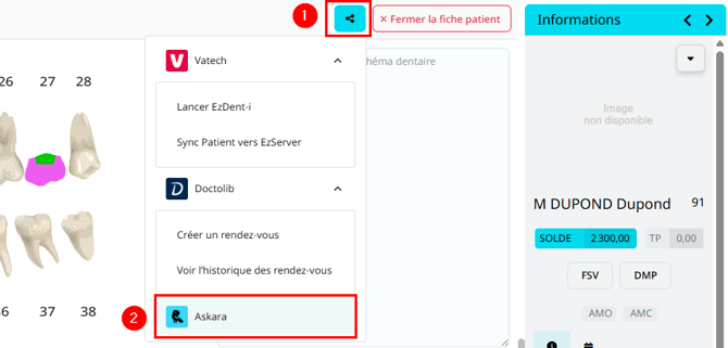 Note : Le bouton de synchronisation permet d'importer un nouveau patient dans askara depuis Weclever Dental :