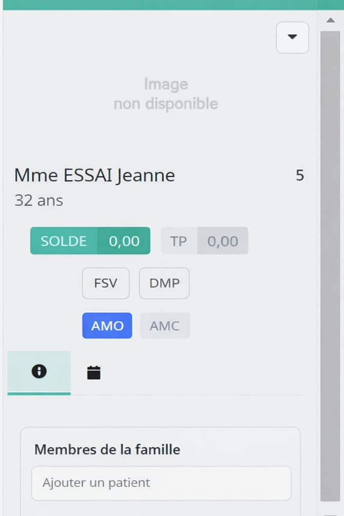 | AMC en grisée | Indique que le patient ne possède pas d'AMC (mutuelle) dans son dossier. | |
