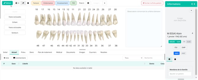 Notes : Si le dossier n'existe pas Weclever Dental vous propose de le créer, en cliquant sur nouveau Patient.