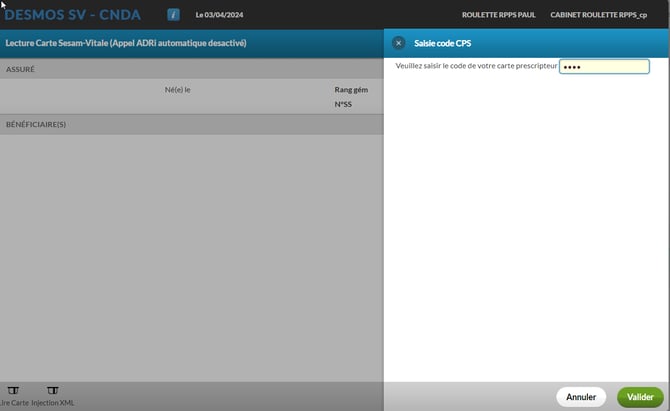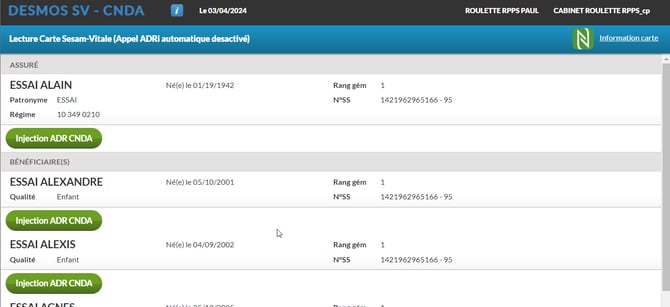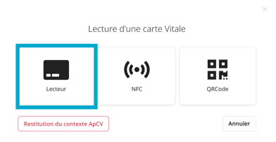 - Lecteur : Lecture carte Vitale physique