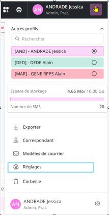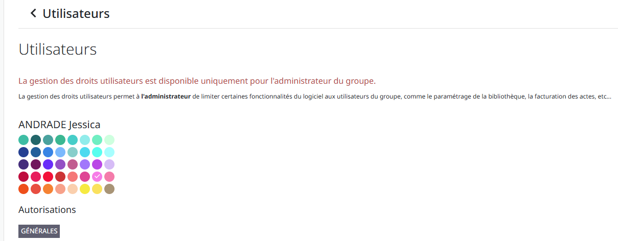 👉 La couleur choisie sera automatiquement appliquée dans la liste des praticiens (menu en haut à droite).