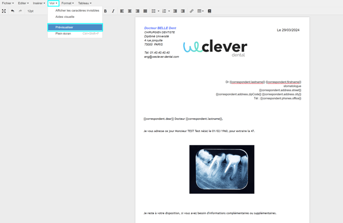 Sélectionnez le menu "Voir" puis cliquez sur "Prévisualiser".