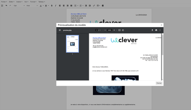 Une fenêtre s'affiche avec le courrier généré au format PDF.