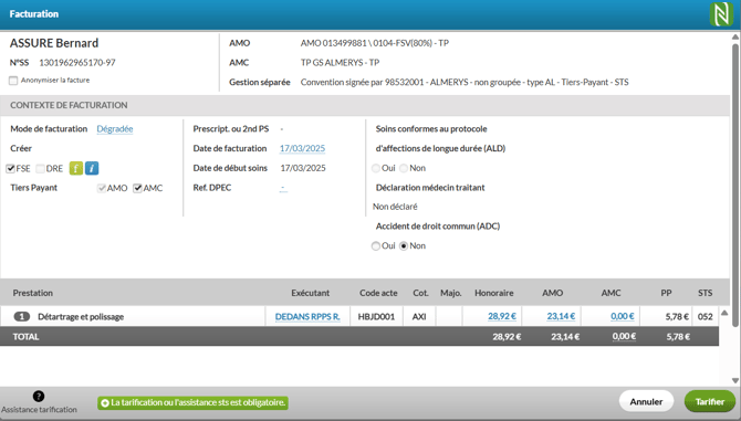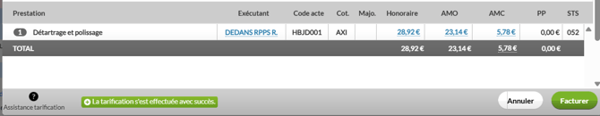 Lors de la facturation de l'examen, il faudra cliquer sur Tarifier pour que la Part Patient passe sur la part AMC.