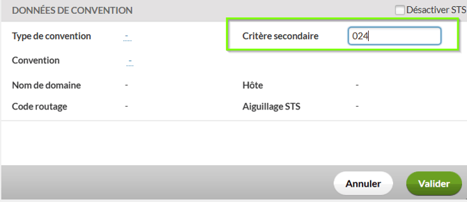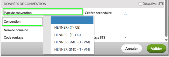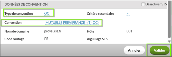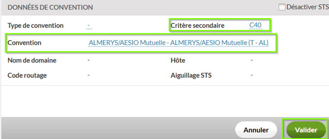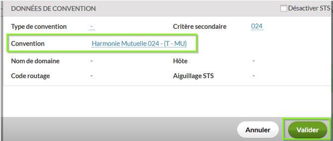 si la mutuelle possède un critère secondaire, saisir la valeur, la convention sera automatiquement sélectionnée. |