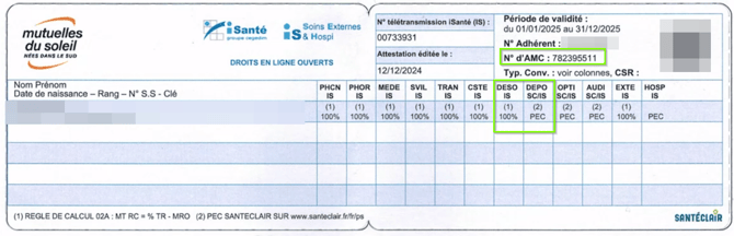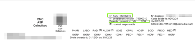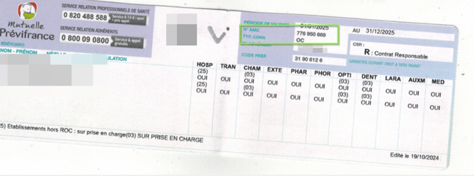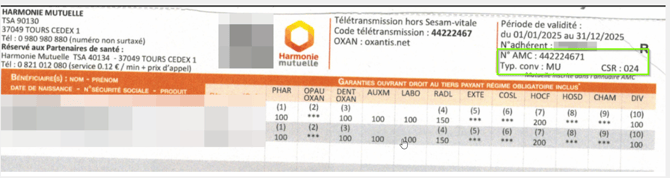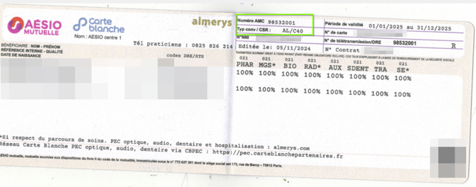 - Le numéro AMC (qui permet d'identifier la mutuelle)
