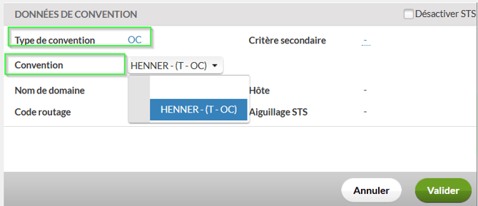 Si OC n'est pas saisit dans le type de convention, plusieurs conventions s'affichent. |