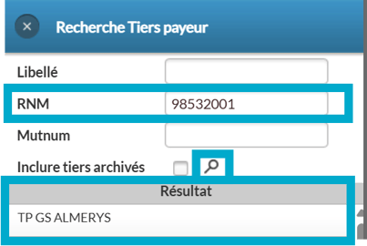 | Cliquez ensuite sur le loupe de tiers payeur | |