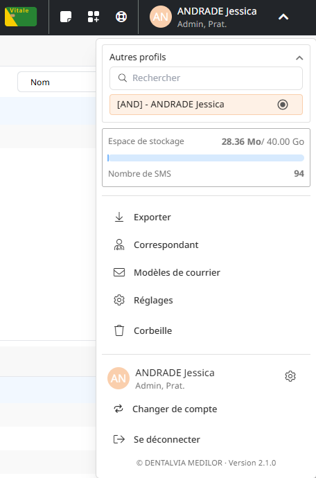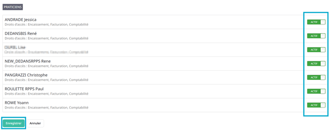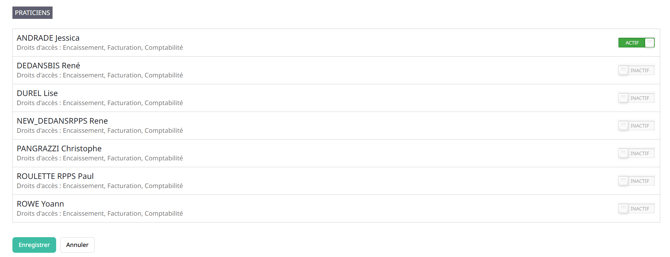 Vous pouvez ici désactiver la possibilité d'accès du praticien vers les autres utilisateurs depuis la liste en haut à droite dans l'interface générale.
