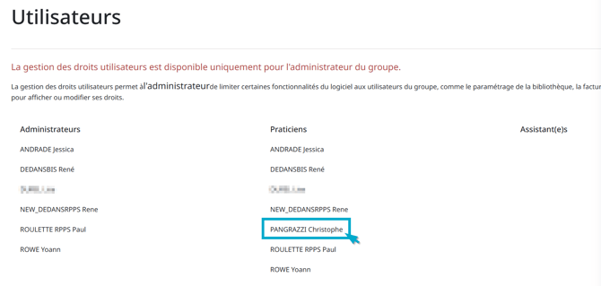 Pour modifier les permissions d'un utilisateur, il vous suffit de cliquer sur son nom.