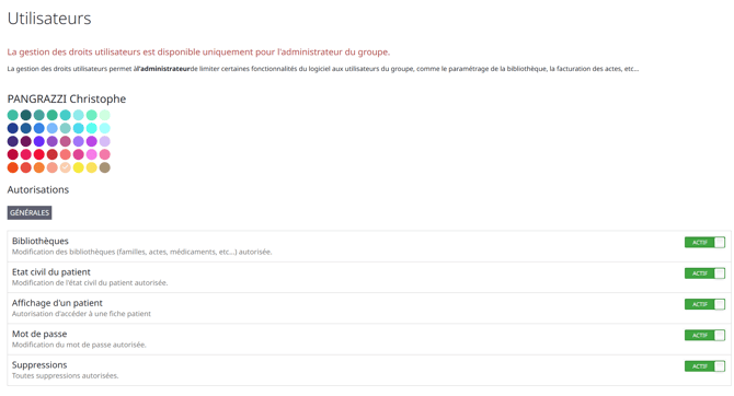 - Accès aux autres praticiens du groupe avec restrictions.